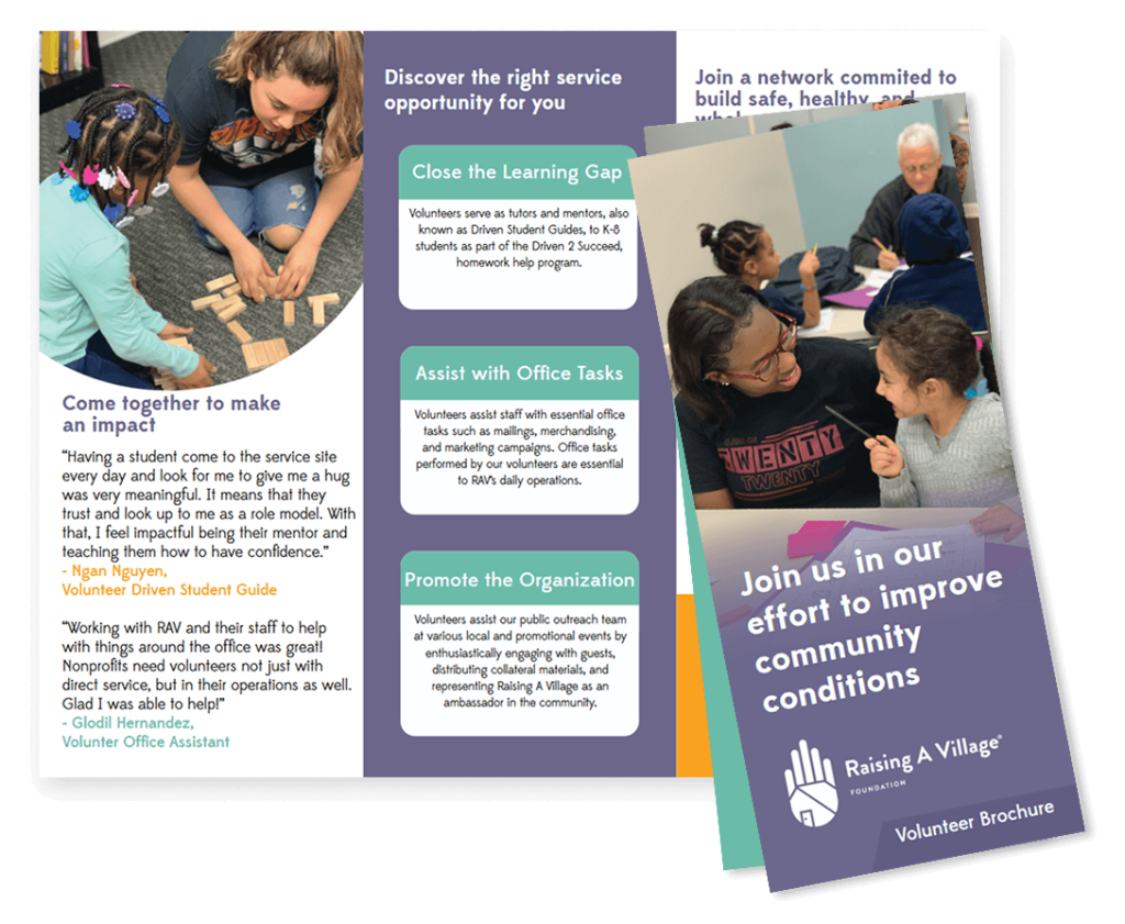 Volunteers assist our public outreach team at various local and promotional events by enthusiastically engaging with guests, distributing collateral materials, and representing Raising A Village Foundation as an ambassador in the community.